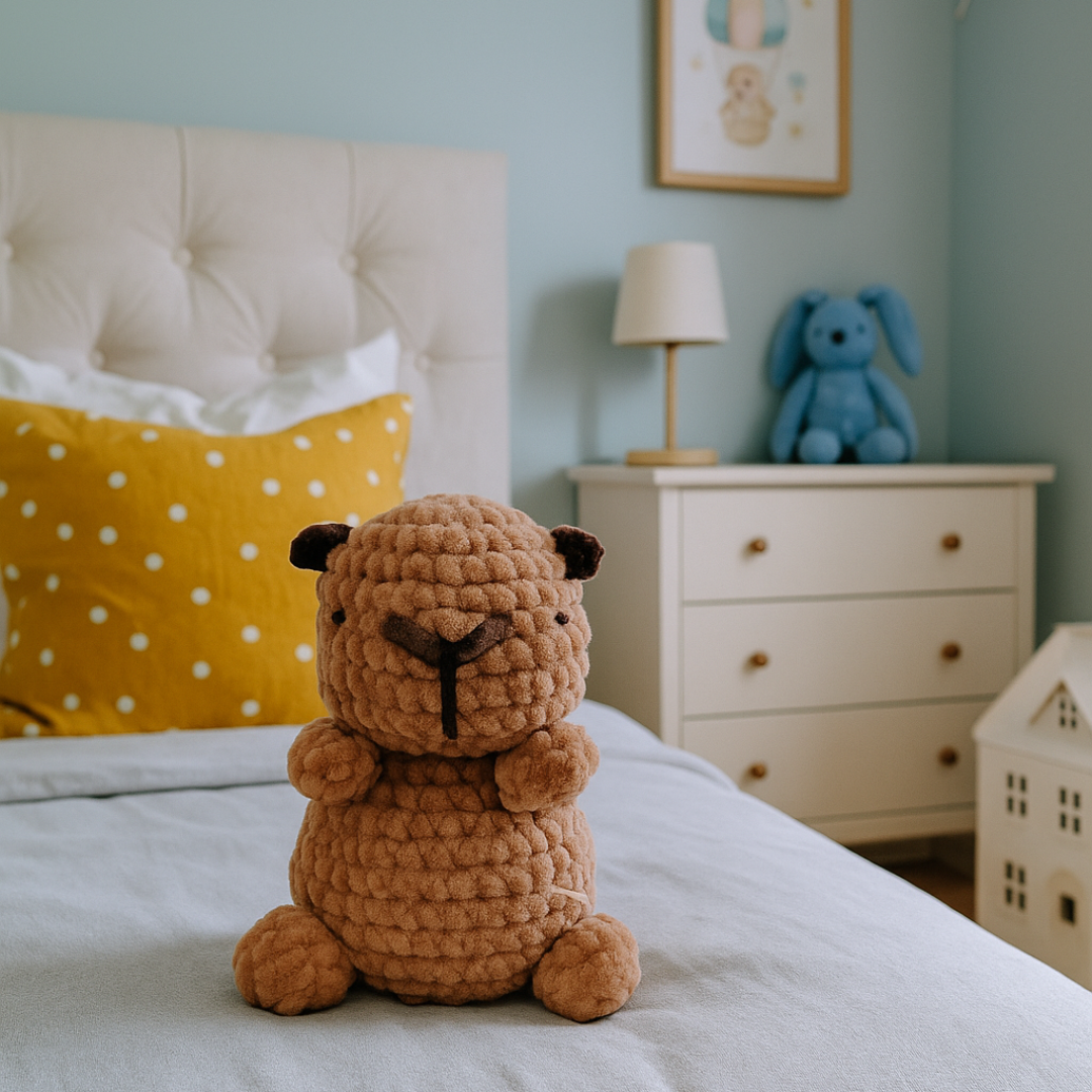 Meet Cooper the Capybara, the cuddly crochet friend who’s ready to brighten your day! Soft, charming, and perfectly sized for hugs, Cooper brings a splash of fun and whimsy to any room. Whether as a unique gift or your new favorite desk buddy, this playful toy promises endless smiles and cozy companionship.