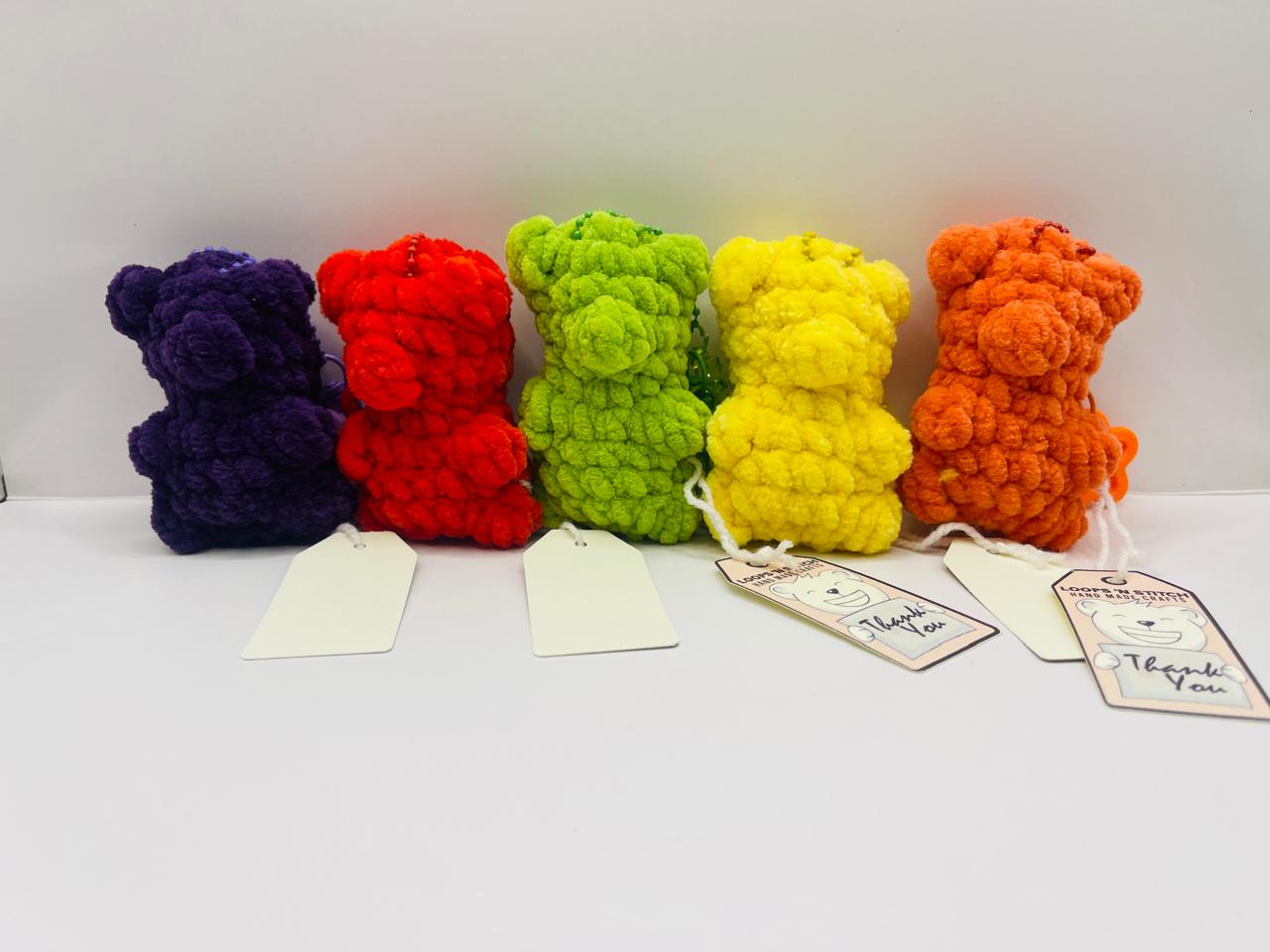 Crafted with exquisite attention to detail, the Jellybean Bear Keychain is a refined accessory that blends charm with functionality. This delicate crochet piece offers a touch of warmth and personality to your keys or bag, making it a sophisticated gift or personal keepsake. Its handcrafted quality ensures each bear carries an elegant uniqueness, perfect for those who appreciate subtle artistry in everyday items.